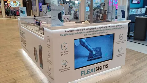 Veikiantis FlexiSkins.lt verslas prekybos centruose (Kaunas, Šiauliai)